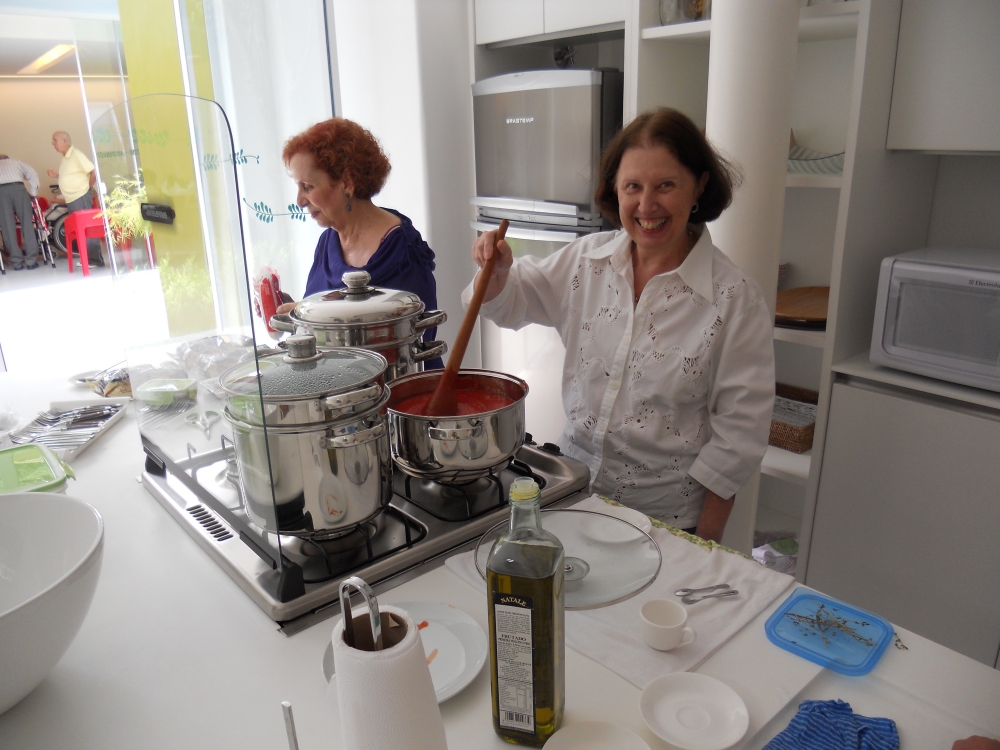 A psicóloga Antonietta Donato e eu, a fonoaudióloga Ana Lucia Tubero, colocamos a mão (e o coração) na massa juntamente com os participantes do Grupo Pauliceia neste projeto. São lembranças, recordações, evocações e memórias associadas à cozinha, à culinária, às refeições, ao ato de cozinhar e preparar os alimentos: não por acaso, uma das integrantes do Grupo Pauliceia – a Bia – batizou o trabalho de Cozinha Experimental da Memória.